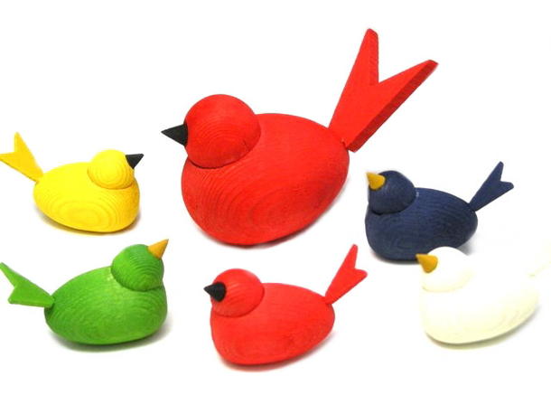 イエロー購入しました。コロンとした鳥さんがとても可愛いです。大きさも飾るには程よく存在感もあります。親子セットなのも嬉しいですね。違う色も欲しいです。