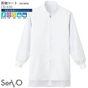 工場のより良い環境作りに貢献。汗をかいても持続する、ドライで爽やかな着心地!気になるヒップまわりをカバーする長め丈。兼用長袖コート CD636 SS〜4L ホワイト 男女兼用 涼感 抗菌 吸汗 速乾 工業洗濯 食品加工 食品工場 衛生白衣 制服 ユニフォーム ジャンパー ブルゾン SerVo サーヴォ