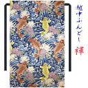 Japanese UnderWear ギフト 海外お土産に 日本美越中ふんどし 登り鯉 鯉 菊 金彩プリント ブルー 和柄 ちょこっとオーダー可 【こだわり工房】 褌 ふんどし パンツ 下着 日本製 ギフト メンズ(L) レディース(M) キッズ(S)