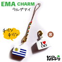 <鈴が鳴ります♪ 選べる根付けストラップ付き> ウルグアイ 国旗 / 絵馬 鈴 チャーム ストラップ ( 世界の 国旗 ・ 選べる 根付け紐 ストラップ付き)