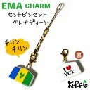 <鈴が鳴ります♪ 選べる根付けストラップ付き> セントビンセント ・ グレナディーン 諸島 国旗 絵馬鈴チャームストラップ ( 世界の 国旗 ・ 選べる 根付け紐 ストラップ付き)
