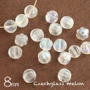 チェコガラス メロンビーズ 20個入り ハンドメイドパーツチェコビーズ メロンビーズ 8mm エッチング加工 オーロラクリスタル 20個 パンプキン チェコガラス 手作りアクセサリーパーツ 材料 ビーズ パーツ ホワイトクリア ピアス