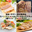 完全無添加 国産鶏スモークチキン 生ベーコン ロースハム そのままお酒のおつまみにサンドイッチにおすすめです!セット小分け BBQ 生ベーコン 筋トレ ケトジェニック 糖質制限 歳暮【お年賀】無料!完全無添加ハム3種セット!【完全無添加手作り★生ベーコンブロックタイプ200g前後★スモークチキン250g前後★ロースハム200g前後】国産豚 国産鶏 保存料・着色料・砂糖不使用 贈答 お歳暮 お中元 ギフト