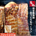 アレンジ自由 ブロックタイプ 200g前後 国産 無添加 手作り 熟成 乾塩法 生ベーコン ベーコン おつまみ グルメ パーティ BBQ 安心 安全 健康【名物★完全無添加手づくり生ベーコン200gブロックタイプ】そのまま食べれる!本物の燻製 国産 保存料・着色料・砂糖不使用 200g前後 冷凍 安心安全 ギフト プレゼント BBQ アウトドア キャンプ パーティー