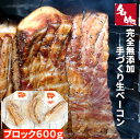 アレンジ自由 ブロックタイプ 600g前後 国産 無添加 手作り 熟成 乾塩法 生ベーコン ベーコン おつまみ グルメ パーティ BBQ 安心 安全 健康【お年賀】ギフト対応 送料無料!【名物★完全無添加手づくり生ベーコン ブロックタイプ200g前後 ×3本】600g本物の燻製!国産 保存料・着色料・砂糖不使用 冷凍 クール便 ギフト 贈答用プレゼント キャンプ パーティー お取り寄せグルメ