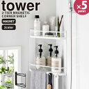 バスルームラック 収納ラック 二段式 収納棚 貼り付け 壁面 水切り 浴室収納 シャンプー リンス ボトル ボディタオル おもちゃ コーナー 角 省スペース 賃貸 シンプル 白色 黒色バスラック[マグネットバスルームコーナーラック 2段 タワー] tower [山崎実業]収納 ラック 棚 磁石 浮かせる フック 浴室 バスルーム お風呂 おしゃれ モノトーン ホワイト ブラック 6623 6624【e暮らしR】【ポイント5倍】