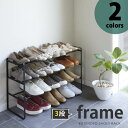 YAMAZAKI 山崎実業 シューズラック 靴収納 下駄箱 シューズボックス 玄関収納 省スペース 大容量 ホワイト ブラック伸縮シューズラック フレーム(frame) 3段[山崎実業]【e暮らしR】【ポイント5倍】