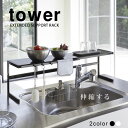 92cmまでワイドに伸びる! 水道周り 収納ラック デッドスペース カウンター カフェ モニターラック伸縮キッチンサポートラック タワー(tower) [山崎実業] コの字型 簡単組立式 シンク上 コンロ上 調味料置き キッチンラック 丈夫 水に強い 白 おしゃれ 北欧 水切り【e暮らしR】【ポイント5倍】