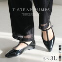 Tストラップ!きれいめシルエットで大人っぽく見える上品アイテムフラットなので歩きやすく、すっきり美脚を演出!Tストラップ パンプス メリージェーン ポインテッドトゥ フラット レディース ローヒール 歩きやすい 大きいサイズ ぺたんこ シンプル 歩きやすい 黒 ブラック シルバー 22.5 24.5 25.0 ルリアンプラス