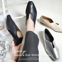 甲やサイドのカッティングで、大人カジュアルな印象に。トレンドのスクエアトゥで上品に履けるフラットタイププレプラサイズ交換無料★パンプス 痛くない 低反発 歩きやすい レディース 黒 ブラック ブラウン ベージュ シルバー 23.0 25.0 バブーシュ 2WAY Vカット スクエアトゥ スリッポン ぺたんこ カジュアル ルリアンプラス プレプラ
