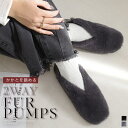シーズンムード高まる印象的なふわふわファーがワンポイントに!かかとを踏んでバブーシュとしても履ける2WAY仕様。クリアランス★パンプス 柔らか 痛くない ファーパンプス バブーシュ 2WAY 1.5センチヒール 快適 レディース 低反発 楽ちん ブラック グレー 22.5 24.5 秋冬 痛くない 歩きやすい キレイめ シンプル スリッポン