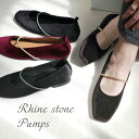 さりげない華やかさをプラスしてくれるラインストーンかかと柔らかくサッ!と履けるパンプス 履きやすい 歩きやすい ラインストーン ローヒール バブーシュ 1.5センチヒール 脱げない レディース ぺたんこ クッション スクエアトゥ ブラック ダークブラウン ボルドー 痛くない ソフト ゴム 甲ストラップ 柔らか