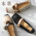 やわらかな本革を使用した、上品バイカラーのメリージェーンフラットパンプス足なじみが良く、毎日履きたくなる快適さ。サイズ交換無料★パンプス 疲れない 歩きやすい スクエアトゥ ベルト フラット 1.5センチヒール 痛くない レディース 天然皮革 コンフォート ブラック ベージュ ホワイト 22.5 24.5 スクエアトゥ ストレスフリー バイカラー バレエコア ローヒール