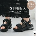 涼しげなシアー素材×厚底エアーソールがおしゃれなスポーツサンダルクッション性のある厚底エアーソールは、安定感があり歩きやすいサンダル 歩きやすい 履きやすい シアー スポーツサンダル 厚底 エアークッション 6.5センチヒール 疲れない レディース 痛くない 脱げない ブラック ベージュ 厚底 スポサン ダブルストラップ ベルトストラップ カジュアル