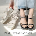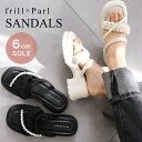 パールとフリルがポイントになるガーリーなデザインの厚底サンダル6cmソールで安定感があり歩きやすくなっています。サンダル 歩きやすい 履きやすい パール フリル 厚底サンダル 6センチヒール 疲れない レディース 痛くない ガーリー ブラック ホワイト プラットフォーム 厚底 快適 ストラップ