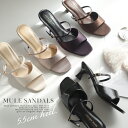 カジュアルにもきれいめにも、大人女性の幅広いシーンに!程よい高さの5.5cmヒールで、歩きやすさとスタイルアップを実現。サンダル 歩きやすい 履きやすい ミュールサンダル ストラップサンダル 5.5センチヒール 低反発 レディース クッション 美脚 ブラック ホワイト ネイビー ブラウン ベージュ 22.5 24.5 春夏 デザインヒール シンプル スムース サテン 黒