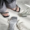 カジュアルにもきれいめにも、大人女性の幅広いシーンをアシストつま先に極細のストラップを2本配置し両サイドを覆うことで、食い込みや指が落ちるのを防ぎしっかり華奢見せサンダル レディース 履きやすい 歩きやすい ダブルストラップ ミュール 6センチヒール スクエアトゥ クッション 美脚 ブラック ベージュ シルバー ワインレッド 22.5 24.5 春夏 モード 黒 プレートヒール 低反発 きれいめ