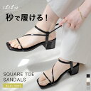 秒で履ける! 着脱簡単×綺麗見えスタイルアップを叶えた一足。曲線の華奢なストラップで足元をスッキリと見せ、女性らしい足元を演出。秒で履けるサンダル 履きやすい 歩きやすい スクエアトゥ ゴムストラップ 華奢 4センチヒール 脱げない レディース 太ヒール アンクルストラップ ブラック ベージュ シルバー アイボリー ホワイト 23.0 24.5 春夏 ストレッチ 伸縮 クッション 痛くない