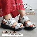 ナッツワールド Nuts world幅広甲高さんにおすすめのこだわりがつまったサンダル。前に歩きやすい『ローリング設計』のソールがポイントです。サンダル レディース 外反母趾 甲高 幅広 カットワークベルトサンダル 3センチヒール 歩きやすい 痛くない 低反発 ホワイト グリーン ブラウン 春夏 ウエッジソール 制菌 防臭 ラウンドトゥ コンフォート 快適