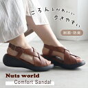 ナッツワールド Nuts world 幅広甲高さんにおすすめのこだわりがつまったサンダル。前に歩きやすい『ローリング設計』のソールがポイントです。サンダル レディース 外反母趾 コンフォート クロスグルカサンダル 5.5センチヒール 歩きやすい 痛くない 履きやすい ブラウン シルバー レッド ピンク ウエッジソール ラウンドトゥ 甲高 幅広 制菌 防臭 低反発
