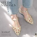 上品さとエッジを兼ね備えた3cmヒールのグルカサンダル足元をぐるりと囲うように配置されたピラミッドスタッズが、大人クールな足元にサイズ交換無料★サンダル 歩きやすい 疲れない ピラミッドスタッズ 3センチヒール 脱げない レディース 太ヒール グルカサンダル ブラック ホワイト シルバー 22.5 24.5 春夏 スタッズ Tストラップ 細ストラップ ローヒール メタリック