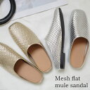 ラクなのに特別感のある大人のための一足細やかに編み込まれたメタル素材がかっこいいサイズ交換無料★サンダル 柔らか 疲れない メッシュフラットミュールサンダル 2センチヒール 履きやすい レディース インヒール スリッパ ゴールド シルバー 22.5 24.0 ローヒール 快適 お出かけ オフィス カジュアル