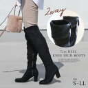 女性らしいシルエットの美脚ストレッチニーハイブーツ安定感のある太ヒールで歩きやすい15日限定10%クーポン★サイズ交換無料★【在庫限り★特別価格】ブーツ 歩きやすい 履きやすい ストレッチ ニーハイブーツ 7センチヒール 痛くない レディース 太ヒール 2WAY ブラック ジッパー ストレッチ 伸縮 ニーハイ ファスナー ロング