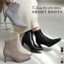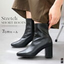 人気のストレッチブーツから美脚を叶える7cmヒールタイプが登場!柔らかく程よいストレッチがきいた素材で足にフィットし足をキュッと細く見せてくれます。15日限定10%クーポン★ブーツ 歩きやすい 痛くない 7cmヒール ストレッチ ショートブーツ 7センチヒール 疲れない レディース 履きやすい ストレッチ 伸縮 ブラック ブラウン 22.5 24.5 秋冬 ショート シンプル 太ヒール チャンキーヒール 茶色