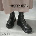 フロントジッパー×ボリュームソールがポイント。ストレッチ素材なのでスッキリとしたシルエットに。15日限定10%クーポン★サイズ交換無料★ブーツ ストレッチ 伸縮 アンクル フロントジップブーツ 5センチヒール ファスナー レディース 厚底 歩きやすい ブラック 履きやすい ジッパー カジュアル ボリュームソール ルリアンプラス