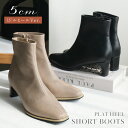 シャープなシルエットが人気のスクエアトゥブーツに5cmヒールが登場!プレートヒールでほっそりとした足元を叶えてくれます。15日限定10%クーポン★ブーツ 歩きやすい 履きやすい スクエアトゥ プレートヒール 5センチヒール 滑らない レディース 美脚 ショート ブラック ベージュ ローヒール 生地巻きヒール 黒 柔らか 履きやすい Lelien plus ルリアンプラス