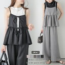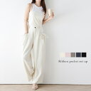 前後2WAY ビスチェ ワイドパンツ セットアップ Vネック リボン タック 体型カバー カジュアル【半額クーポン対象】前後2WAY ビスチェ ワイドパンツ セットアップ Vネック リボン タック 体型カバー 美脚見え 大人可愛い レディース メール便 【lssess25-1230】【即納:1-5営業日】【送料無料】メ込2
