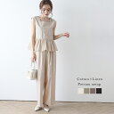 セットアップ コットン リネン ノースリーブ ペプラム ワイドシルエット スクエアネック【半額クーポン対象】セットアップ コットン リネン ノースリーブ ペプラム ワイドシルエット スクエアネック レディース おすすめ おしゃれ メール便 2025秋冬新作【lssess24-379】【即納:1-5営業日】【送料無料】メ込2