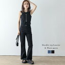セットアップ デニム ビスチェ フレアパンツ ダブルジップ レイヤード ハイウエスト 大人カジュアル【半額クーポン対象】セットアップ デニム ビスチェ フレアパンツ ダブルジップ レイヤード ハイウエスト 大人カジュアル トレンド レディース おすすめ おしゃれ メール便 2025秋冬新作【asess24-329】【即納:1-5営業日】【送料無料】メ込2