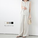 セットアップ キーネック ノースリーブ イージーパンツ キレイめ 楽ちん 涼やか 美脚【半額クーポン対象】セットアップ キーネック ノースリーブ イージーパンツ キレイめ 楽ちん 涼やか 美脚 体型カバー レディース おすすめ おしゃれ 2025秋冬新作 【lssess25-1348】【即納:1-5営業日】【送料無料】メ込2