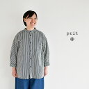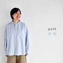 プリット ブロード 綿 ストライプ ロンスト ヘアライン シャツ ブルー ネイビー【SALE 40%OFF】prit 40/1ブロードストライプスタンドカラーオーバーサイズシャツ