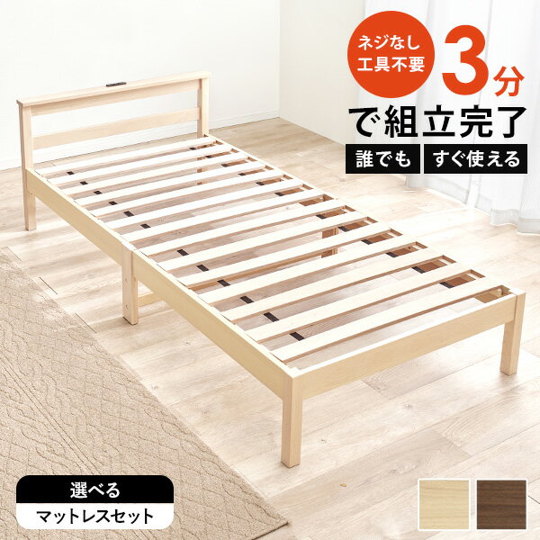 約3分で組立てが完了!ネジレスで超カンタン組立てのベッドフレーム。ベット スノコ スノコベット 木製ベット 工具不要 単品 セット 新生活 移動簡単 マットレス付き<約3分で組立完了>工具不要&ネジ無しベッド コンセント付き【NEJILESS】ネジレス(すのこベッド すのこ ベット ベッド マットレス付き すのこ ベット シングル マットレスセット 棚付き 宮棚付き ベッドフレーム 簡単組立 シングルベット 宮付き 木製 おしゃれ)