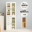 ダイニングボード キッチンキャビネット ガラス扉 高さ調節 木製 かわいい 食器収納 可動棚 飾り棚 パントリー 保存食 カトラリー 家電 電子ケトル トースター 炊飯器容量によって選べる カントリー調 キッチンボード 幅60【Tarte】タルト Bタイプ(キッチンラック スリム 食器棚 キッチン 収納 扉付き カップボード キャビネット おしゃれ 棚 キッチン収納 収納棚 大容量 北欧 木目調 ナチュラル ホワイト)