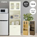 キッチンキャビネット ダイニングボード ガラス扉 棚 木目調 省スペース キッチン ホワイト ナチュラル ブラウン チェスト 台所収納 高さ調節 家電収納 パントリー食器棚 スライド収納 ワゴン収納 幅59cm【Claire】クレア(キッチンラック キッチン収納 キッチン スリム 食器収納 収納棚 キッチンボード 扉付き ハイタイプ キャビネット 大容量 コンパクト 一人暮らし 引き出し 可動棚 収納 隙間収納)