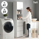 ランドリーや脱衣所・洗面所、キッチン、リビング、ダイニングなど色々な場所で使えるスリムなキャビネット。扉・引き出し・棚付きで使いやすさも抜群。シンプルでモダンなデザイン。隙間収納 幅41/59cm【Tall】トール(すきま収納 ラック スキマ収納 キッチン 収納 キッチン収納 スリム 食器棚 リビング おしゃれ キャビネット 北欧 引き出し リビング収納 チェスト ランドリー 洗面所 脱衣所 ストック 収納庫 棚)