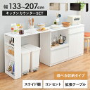調理台 キッチン台 伸縮テーブル ホワイト ナチュラル 北欧風 台所 キッチンカウンター おしゃれ 可愛い 可動棚 高さ調節 木目調 韓国風 レンジラック コンセント付き 家電収納 伸縮【レビューで特典あり】伸縮可能なキッチンカウンター(スライド棚 幅73.5〜121.5cm)【MOMO】モモ(キッチン棚 伸縮ラック キッチン収納 食器棚 キッチンラック 伸縮 ラック 炊飯器ラック レンジ台 白 キッチン 収納 引き出し キッチン収納ラック キッチン収納棚 ロータイプ)