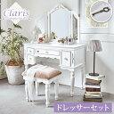 送料無料/クラシカルデザインのアンティーク風ドレッサー。椅子付きなのでこれ1台で使えます。アンティーク家具や姫系家具や白 ホワイトの家具がお好きな方におすすめ!クラシカルデザイン ドレッサー [三面鏡] スツール付き【Claris クラリス】(ドレッサー アンティーク 姫系 鏡台 アンティーク家具 アンティーク風 白 ホワイト 白家具 アンティーク調 ヨーロピアン クラシック家具 ロマンチック 洋風家具 姫系家具)