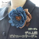 デニム調のコサージュであえてカジュアルダウンのおしゃれ上級者さんコーデ♪コサージュ 入学 入園式 デニム調ピオニーコサージュ | 卒園式 卒業式 発表会 結婚式 およばれ おしゃれ 上品ミュゼ 大人 セレモニー デニム ブルー
