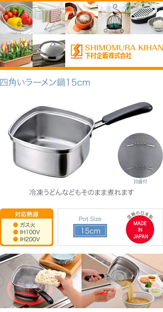 冷凍うどんなどもそのまま煮れます♪ 下村企販 四角いラーメン鍋15cm 33107