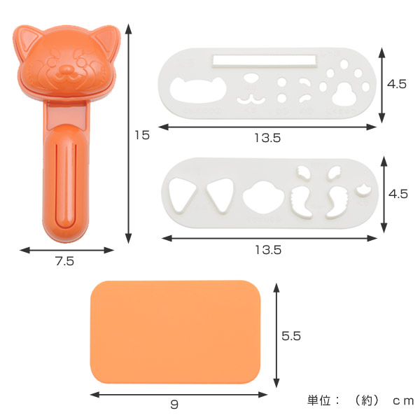 | サイズ | おにぎり型:約 全長15×幅7.5×高さ5(cm) 海苔カッター: 約 縦4.5×横13.5×厚さ1(cm) 食材カッター: 約 縦4.5×横13.5×厚さ1.5(cm) カッターマット: 約 縦5.5×横9×厚さ0.3(cm) | | 内容量 | おにぎり型、海苔カッター、食材カッター、カッターマット各1個 | | 材質 | おにぎり型:ポリプロピレン 海苔・食材カッター:ABS樹脂 カッターマット:シリコーンゴム | | 生産国 | 中国製 | | 備考 | ※食洗機・乾燥機使用不可 | | 商品区分 |   |