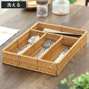 丈夫で壊れにくいフェイクラタンのカトラリーボックスカトラリーケース トークキッチン カトラリーボックス ( カトラリートレー カトラリー収納 仕切り付き お箸 フォーク スプーン 入れ カトラリー フェイクラタン ラタン風 北欧 洗える ナチュラル )