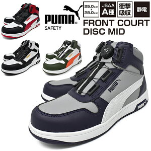 安全靴 プーマ【PUMA SAFETY FRONTCOURT Disc Mid】メンズ 安全スニーカー ハイカット ミッドカット JSAA規格A種 プロスニーカー 幅広 3E EEE 軽量 防滑 耐油 滑らない 先芯樹脂 プーマ 安全靴 PUMA DISC LACING SYSTEM スニーカー メンズ セーフティー【安全靴】