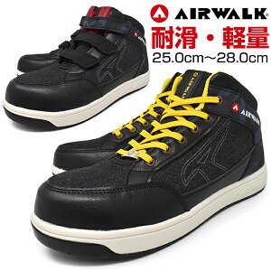 安全靴 エアウォーク【AIR WALK】メンズ 安全スニーカー ワークシューズ 幅広 3E EEE 軽い 軽量 先芯樹脂 面ファスナー マジックテープ パンチング 通気性 合成皮革 ミッドカット メンズ おしゃれ かっこいい【安全靴】 ニューイヤー 新年