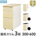 ワゴン オフィスワゴン 3段ワゴン キャビネット スチール 引出し脇机 3段 本体ホワイト 木目 スリム 幅300×奥行600mm 袖机 デスクワゴン 幅30cm サイドワゴン サイドキャビネット サイドデスク 鍵付き おしゃれ LD-WD3S-C