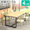 会議テーブル 木目調 長机 テーブル 応接室 高級感 打合せ 黒【P5倍1/15 13-15時&最大1万円クーポン1/9-15】 【法人限定】 会議用テーブル セット 4人用 配線ボックス付き 幅1800mm ダイニングチェア ミーティングテーブル ワークテーブル 机 おしゃれ GLL-1890H-ETV-14