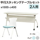 フォールディングテーブル スタッキングチェア テーブル チェア【P5倍1/15 13-15時&最大1万円クーポン1/9-15】 会議用テーブル チェア セット 2人用 幅1500×奥行450mm 幕板あり ワークテーブル ミーティングテーブル ミーティングチェア スタッキング HST-1545M-STC-12